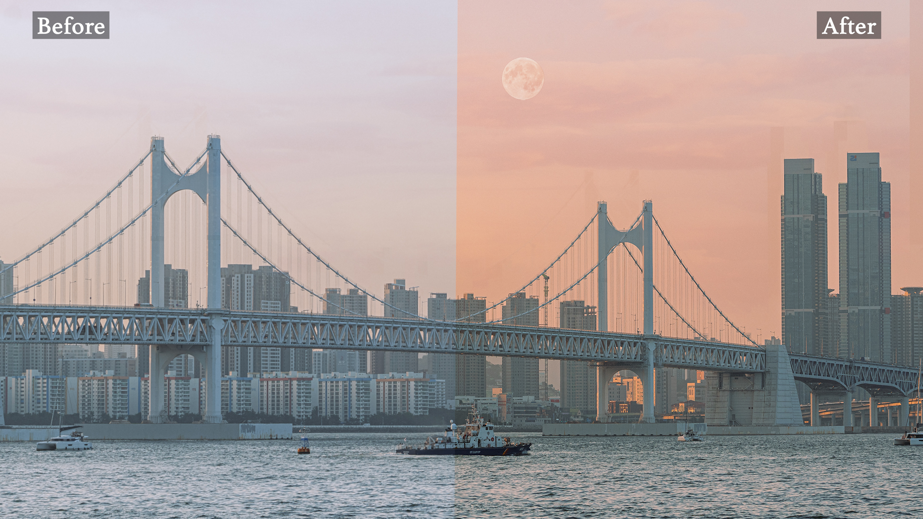 색보정은 밝기와 대비, 하이라이트, 그림자 영역을 먼저 다루고 색조를 넣고 강조하고 싶은 색상을 조절하는 방식으로 진행됩니다. 저는 다소 낮은 대비와 채도로 부드럽고, 청량하면서도 따스한 느낌의 색감을 연출하고 고유의 색은 유지하면서 붉은색 노을이나 푸릇푸릇 한 잎과 같은 부분은 강조해 생동감을 더합니다.