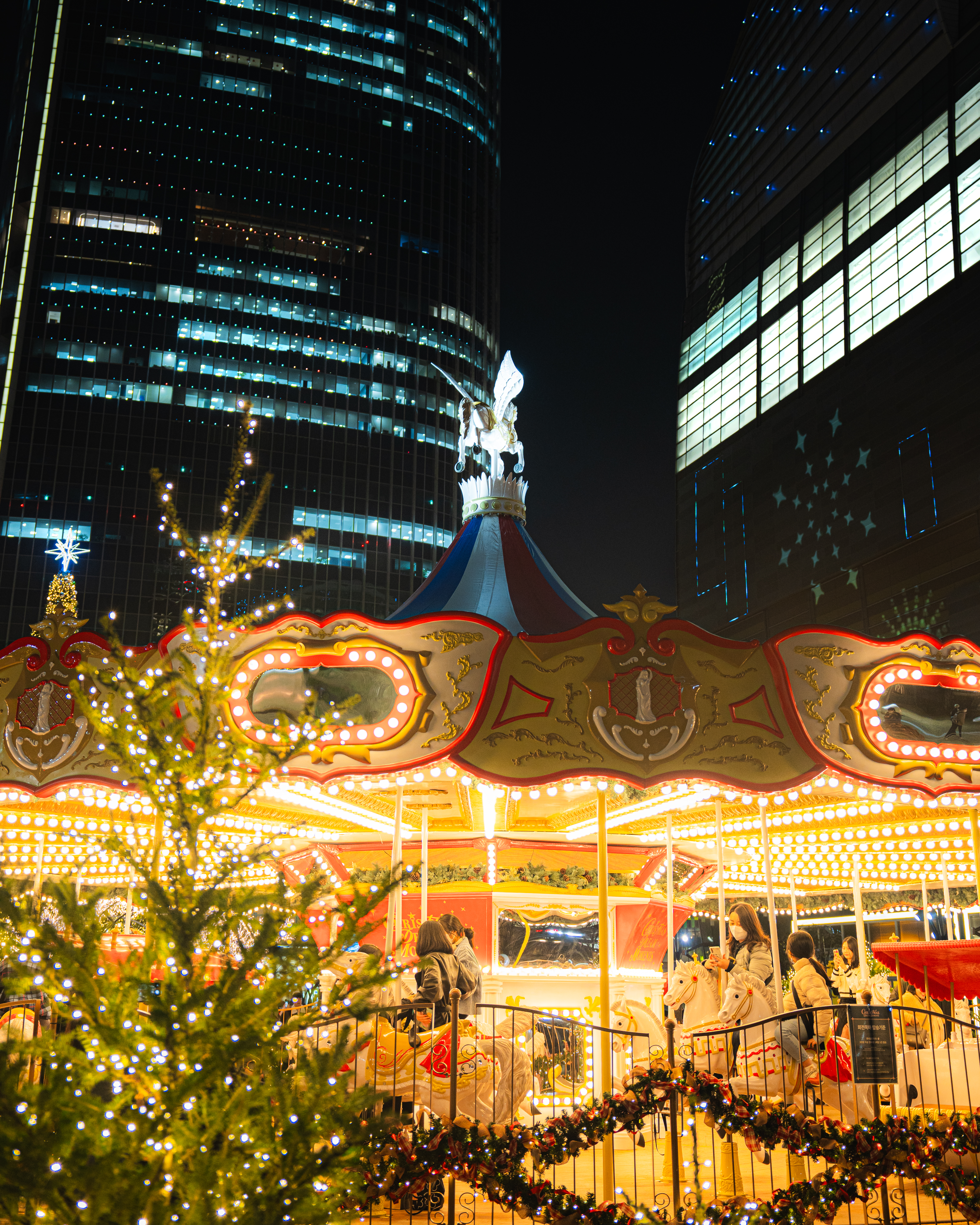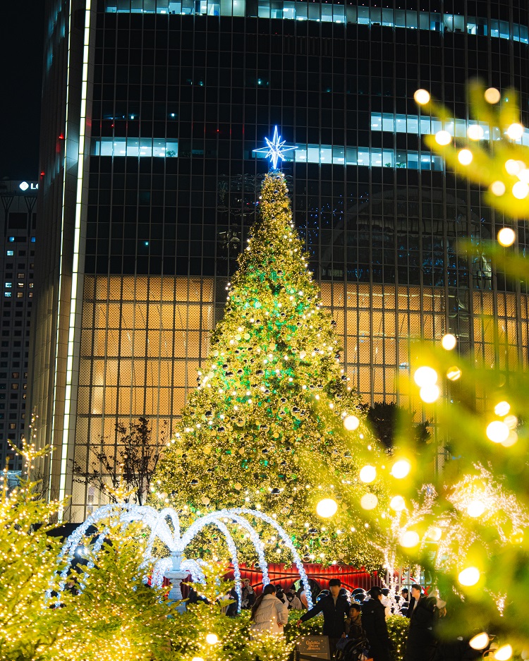 앞서 연말 서울 데이트 장소로 추천드린 롯데월드 외에도 롯데타워 앞 석촌호수로 이어지는 광장은 크리스마스 분위기가 한창입니다. 놀이 기구에 취미가 없으신 분들도 방문하셔서 연말 무드를 마음껏 느끼실 수 있는 공간인데요. 포근한 노란 조명들로 아름답게 꾸며진 회전목마가 천천히 돌아가는 모습은 마치 작은 동화 마을을 연상시켜 겨울의 낭만을 한껏 느끼게 해줍니다. 롯데월드 몰에서 3만원 이상 결제한 영수증을 지참하면 직접 회전목마를 타볼 수 있답니다. 작은 조명들로 덮인 미로 정원과 나무들 사이로 세워진 웅장한 트리는 연말 촬영 장소가 되기도 하죠. 실내외 모두를 즐길 수 있어 겨울철에 더욱 유용한 서울 데이트 코스로 제격이랍니다.