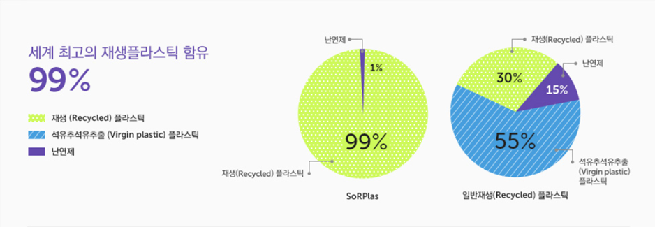 재활용 플라스틱 99% 함유, 소플라스(SORPLAS)