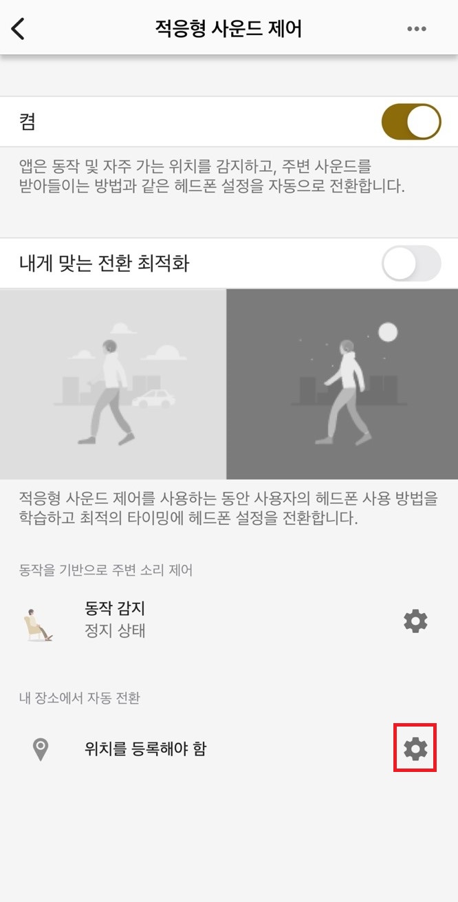 적응형 사운드 제어 기능은 정지 상태, 걷는 중, 뛰는 중, 차량 이동 등 다양한 액션 패턴과 자주 방문하는 위치가 감지된 프리셋이 자동으로 선택되어 청취 스타일에 맞는 사운드가 설정됩니다. 사용자의 모션을 감지해 상황에 맞는 사운드를 설정한 값에 따라 자동으로 조절해주죠. 20단계의 세밀한 주변 소리 설정으로 나에게 딱 맞는 최적의 사운드를 설정할 수 있습니다. 자동으로 나에게 딱 맞는 사운드를 제공하는 소니, 정말 똑똑하지 않나요?