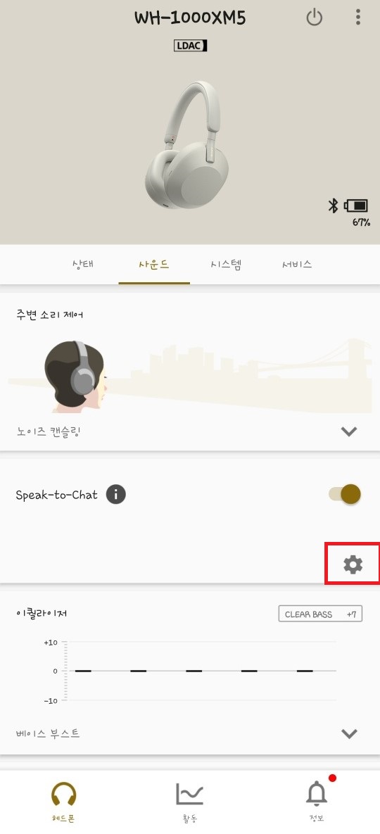 또한 CLEAR BASS의 음량 역시 편집할 수 있는데요. CLEAR BASS 설정 값을 늘리면 높은 음량에서도 왜곡 없이 깊은 동적 저음을 즐길 수 있습니다.