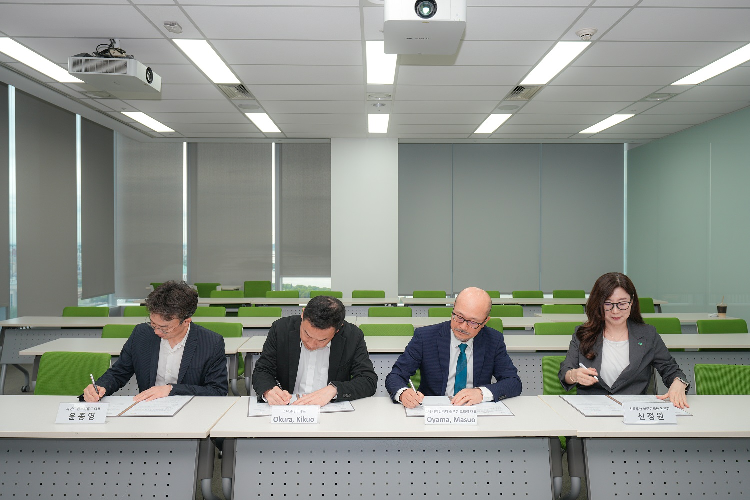 소니코리아 여의도 본사에서 진행된 업무협약식에는 오쿠라 키쿠오 소니코리아 대표, 오오야마 마스오 소니 세미컨덕터 솔루션 코리아 대표, 신정원 초록우산 어린이재단 본부장, 윤종영 타이드 인스티튜트 대표가 참석했다.